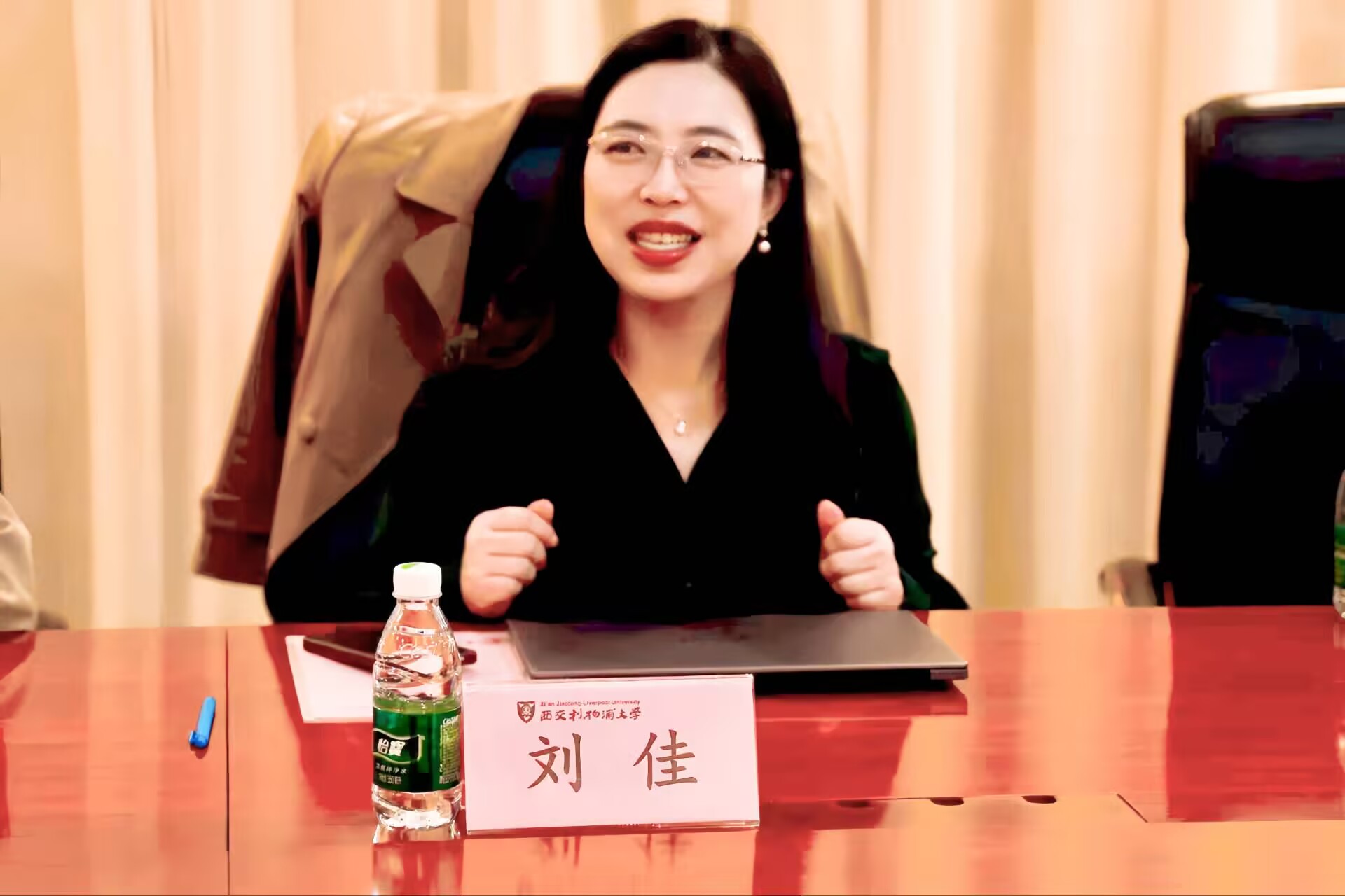 刘佳介绍了西交利物浦大学的办学特色及其太仓校区的专业设置、校企合作模式以及学校在创业与就业方面给予学生的全方位支持,分享了研究生教育的培养特色,展示了其国际化、融合式教育的特点。她表示,两校具有深厚的历史渊源,西交利物浦大学愿意共享线上课程资源,助力学生无缝衔接国际一流硕士教育。
