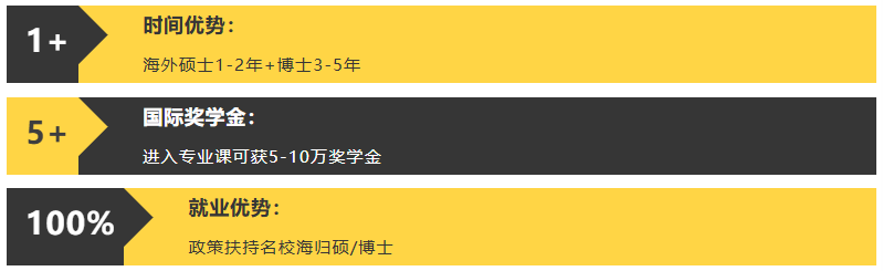 为进一步拓展学生的国际视野,培养国际化、复合型、应用型人才,学校与校际友好院校开展学分互认的本升硕、硕升博国际课程联合培养项目。在校全部专业学生,前3/3.5年就读城院,大四赴外就读1/1.5年硕士,获得硕士学历后,无需参加国内笔试联考,通过材料审核申请海外名校博士研究生的入学资格,实现最短时间直通世界名校教育的捷径。